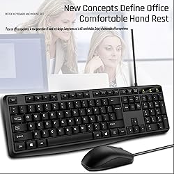 - Wired Keyboard and Mouse Combo, Full-Sized Ergonomic Computer Keyboard and Optical Wired Mouse for Windows, Mac OS Desktop/Laptop/PC-Black