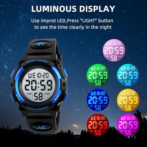 SKMEI Kids Digital Sports Watch Waterproof with Night Light for Age 5-12 Boys Girls Kids Gift