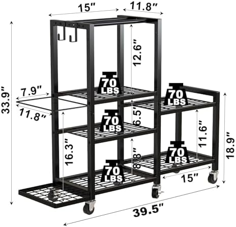 - Convenient Height Adjustment and Rolling Design: Equipped with height-adjustable feet, the rack allows users to customize the height for optimal storage space. Additionally, the four durable wheels make it easy to move the rack, enabling quick rearrangement of your gym space or effortless cleaning, offering ultimate flexibility and convenience