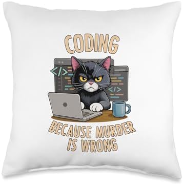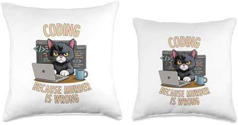 Funny Cat Coder Coding Because Murder Is Wrong Throw Pillow