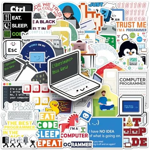 - Programmer Stickers: Each pack include 50pcs different stickers,are specially designed about Programming. All the fancy Cute stickers are clear patterns.Personalized Pattern perfect for Kids Gift!
