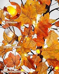 - Artificial Fall Lighted Maple Tree – Perfect for Fall & Holiday Decor Bring the beauty of the fall season into your home with our 8 ft Artificial Fall Lighted Maple Tree. Featuring 320 realistic maple leaves, 160 warm white LED lights, and 40 acorns, this tree creates a stunning, lifelike glow for your Halloween decorations, Thanksgiving celebrations, or fall decor. Whether indoors or outdoors, it’s the perfect addition to your home, garden, or patio. With its adjustable branches, you can customize the tree’s shape and even hang ornaments to match your DIY tree decorations. The built-in timer function (6 hours on, 18 hours off) and 8 lighting modes offer easy, energy-efficient customization, while the safe 4.5V low voltage ensures worry-free use. This artificial tree is not only ideal for fall wedding decor or fall home decorations, but it also makes a wonderful centerpiece for your Christmas decorations or outdoor artificial trees. Add warmth and charm to your space with this versatile, faux maple tree, perfect for any holiday or cozy seasonal ambiance. 8 FT 160 LED Artificial Fall Lighted Maple Tree Size: 8ft Quantity: 1 piece Application: autumn, harvest, thanksgiving, party, indoor, outdoor