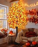 Succwoah 8FT Artificial Fall Lighted Maple Tree with 160 LED 320 Faux Maple Leaves and 40 Acorns Dimmable Timer and 8 Flash Modes for Autumn Harvest Thanksgiving Party Indoor and Outdoor Decor