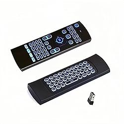 7 Color Backlit LED MX3 Pro Mini Keyboard Fly Remote Mouse,Android TV Remote Control,IR Learning Mini Wireless Keyboard for Android TV Box.HTPC.IPTV,Networked Set-top Box,Mini PC(Battery not Included),It Support Android TV Box, Android Smart TV, Projector, HTPC, All-in-one PC,Xbox, Raspberry Pi,Mini PC,Networked set-top Box, etc. Multifunctional fly Remote : 2.4G wireless Keyboard and Combo, 6-Axis Somatosensory and Infrared remote control,please note that this remote do not fit for amazon fire TV and Fire TV stick ,or some samsung and sony smart TV (the User manual Attention ). Plug and Play: With 3-Gyro + 3-Gsensor, it’s more convenient to operate in horizontal and vertical mode for games and typing,how to pair,firstly, make sure the new enough power battery install properly,secondly press OK+TV at the same time for 3 seconds,the red LED indicator will flash fast,then insert the USB dongle into the USB port of the device,red LED indicator stopped flashing,means pairing succeed. Wireless remote keyboard with LED Backlight buttons, its much convenient for you to use in the pitch-dark night,please note that the batteries not included ,Please use 2*AAA to install,how to use,remove the back cover,and insert 2*AAA batteries,then plug the USB dongle into the USB port of your device ,remote will paired with the device automatically, test by moving remote to see if the cursor is moving,if not, and red LED indicator is not flashing,press cursor lock button and try again,if still not,try plug the USB dongle into another USB port . This remote is a universal remote controller, it is normal thata few keys might not be applicable to your device because of different codes by different manufacturer, Up to 5 keys can be programed from your TV remote, it is much easier for you to control both TV and Android TV Box with one remote.