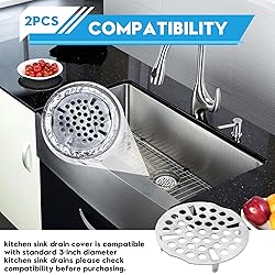 Product Information:The product size is 3.1 inches, the 3 inch kitchen sink drain cover is designed to fit standard kitchen sink drains and fit tightly, effectively preventing debris from falling into the pipes and causing clogging, ensuring smooth drainage. With your purchase you will receive two brand new 3 inch drain covers for your use or spare needs Product Features:Designed for commercial sinks and busy households, this drain cover features a fine mesh surface with medium-sized mesh holes. The ultra-flat profile sits flush with the bottom of the sink, trapping food debris while allowing for fast water flow. No tools required, just insert to enjoy cleaner pipes faster Compatibility: kitchen sink drain cover is compatible with standard 3-inch diameter kitchen sink drains, please check compatibility before purchasing High Quality Material: the sink drain strainer is made of high quality stainless steel, durable and corrosion-resistant, able to withstand the daily erosion of water, grease and food acids, not easy to rust and maintain a clean appearance even after prolonged exposure to water and all kinds of stains Easy to use: the drain cover is easy to install in the following three steps: ① Measure the drain opening → ② Confirm the diameter is 3 inches → ③ Press into the sink to complete the installation. No screws, no adhesives - can be removed and repositioned for deep cleaning at any time After-sales service: your satisfaction is our first choice, if you have any questions about our 3-inch drain cover, please feel free to contact us via email or online customer service, we will ensure your shopping experience