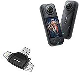 - BoxWave Smart Gadget Compatible With Insta360 X5. Never run out of storage again! Capture every memory with the AllReader SD Card Reader! BoxWave's AllReader SD Card Reader is one of the most VERSATILE SD and microSD card readers for your device! Comes with four interfaces including USB-C, USB-A and Micro-USB for easy access. Finally, an easy way to transfer files between devices! Save all of your photos onto your desktop quickly, or upload some music into your smartphone. Now it's all possible with the AllReader SD Card Reader! Just PLUG N PLAY with the built-in connectors to copy files to and from all of your devices. Simply plug in a SD card or microSD card, and attach it to your device; The AllReader SD Card Reader will detect your card for QUICK ACCESS to photos, music, videos, and other files! Never run out of storage again! Use as many cards as you like to store every photo, music, or video! CAPTURE every memory and store them away to revisit in the future! Advanced design packs in all of the electronics into a tiny package that has built in connectors. Easily pack it in your bag, purse, or pocket and take it with you EVERYWHERE! Don't buy 4 different card readers for all of your devices, get the AllReader SD Card Reader that JUST WORKS with everything! 💬 Purchase includes limited third-party technical support for Insta360 X5 (up to 3 inquiries via electronic messaging) - not affiliated with or endorsed by Insta360 *** PLEASE NOTE, X5 DEVICE NOT INCLUDED ***