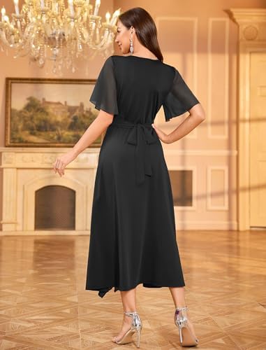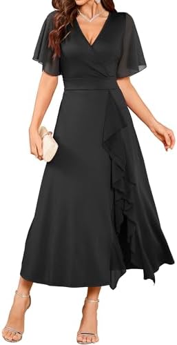ZAFUL Womens Semi Formal Wedding Guest Dresses V Neck Flared Sleeve Evening Gowns Split Ruffle Party Modest Dress 2025