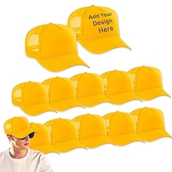- Custom Sublimation Hats 12 Pack Set for Boys, Men - Bundle with 12 Trucker Hats with Foam Mesh 21.5-25.2 inches Adjustable Hat | Blank Baseball Hat for Men, Women. This baseball cap set includes 12 hats with a rear foam mesh for air ventilation and a polyester front. One Size Fits Most: Designed with an adjustable plastic snap closure, head circumference is about 21.5-25.2 inches/54-60 cm, fits most men and women. Freely decorate your own trucker cap as the canvas can be drawn on with any writing utensil, or freely slap on your very own design! 12 pack of truckers hats for him or her, comes with an adjustable strap to fit on most heads.