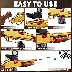 SAFE FOAM DART FUN: Designed for kids, this toy shotgun shoots ultra-soft foam darts with rounded tips. CLASSIC LEVER-ACTION PLAY: Features authentic manual lever-action cocking – pull the lever down and back to load the next foam dart! Provides satisfying tactile feedback and develops hand-eye coordination while delivering exciting, imaginative play. INCLUDES DARTS : Comes complete with 40 colorful foam darts and 2 magazines . Perfect for friendly target games, backyard challenges, or roleplay adventures with siblings and friends. OUTDOOR ADVENTURE & ROLEPLAY: Ideal for backyard battles, park playdates, or cowboy/cowgirl adventures! Encourages active outdoor play, sparks creativity, and is the ultimate prop for imaginative scenarios. DURABLE, CHILD-SAFE DESIGN: Made from high-quality, non-toxic ABS plastic for lasting durability. Features an ergonomic grip for comfort and complies with child safety standards (ASTM F963). **Recommended for ages 8 and up.**