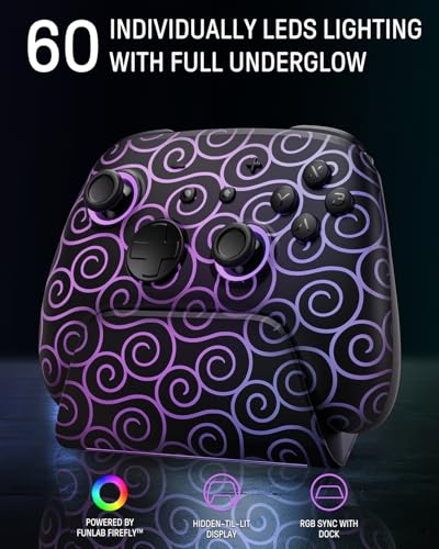 FUNLAB Switch 2 Pro Controller with Charging Dock Compatible with Switch2/OLED/Steam Deck, Wireless Bluetooth Controller with Hall Effect Joysticks, Luminex Control Gamepad with 7 LED Colors/Paddle/Turbo/Motion-Purple