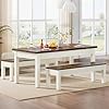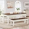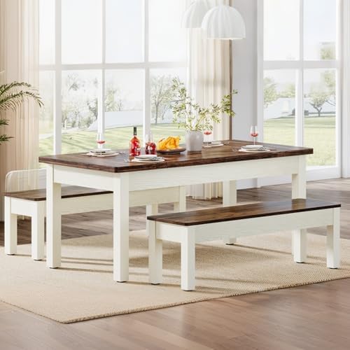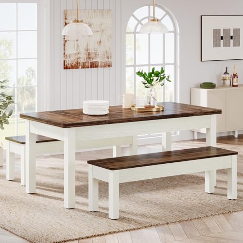 Tribesigns Farmhouse Kitchen Table Set for 4-6, 55-Inch Wooden Dining Table with 2 Benches, Space Saving 3 Pieces Heavy Duty Dinette for Dining Room, Kitchen, Small Space