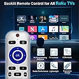 Compatible with: Only compatible with Roku Series TV, As for TCL Roku TV, for Hisense Roku TV, for Onn Roku TV, for Sharp Roku TV, for Element Roku TV, for Westinghouse Roku TV, for Philips Roku TV, for Insignia Roku TV, for JVC Roku TV, for RCA Roku TV, for Hitachi Roku TV and for Sanyo Roku TVs Series. Before placing an order, please make sure your device model is fit our remote Not Compatible with: Please note, this remote NOT compatible with any Roku Stick, NOT for Roku Box 1/2/3/4(HD/LT/XS/XD), NOT for Roku Streaming Stick, NOT for Roku Express, NOT for Roku Ultra, NOT for Roku Premiere, NOT for Roku Player, Not for LG remote, Not for Google remote. Before placing an order, please make sure your device model is fit our remote Unique Backlit Remote Control Design: Please note, this is our unique backlit design for the ROKU tv remote control, Just press any button, it will automatically turn on, with led backlight buttons, you can easily use in the dark, and the light will automatically turn off when you not use it With 6 Shortcut Buttons: You can use it to find your favorite content, Quickly jump to your favorite scenes with standard navigation and playback controls. Preset 6 app button shortcuts, Quick access to your favorite content Easy to Use: No pairing or programming needed. Just Insert 2 Pcs*AAA batteries to get it work (Batteries not included), Perfect replace the original remote control by this infrared remote control, Disclaimer,This product is not affiliated with, sponsored by or associated with the brand it fits, including Roku