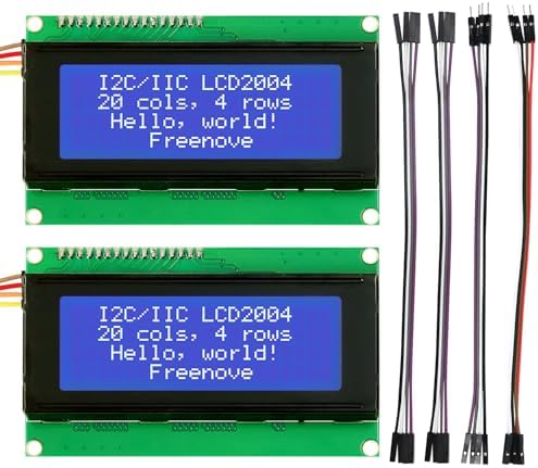 Freenove I2C IIC LCD 2004 Module (2 Pack), TWI Serial 20x4 Display, Compatible with Arduino Raspberry Pi Pico ESP32 ESP8266