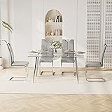 KATBOC 51" Modern 5-Piece Dining Table Set for 4 Rectangular Glass Table with 4 Upholstered Leather Chairs, Seats 4 Ideal for Kitchen Dining Room(Gray&Silver)