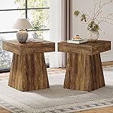 Tribesigns Small End Table, Rustic Square Side Table with Wide Base, Farmhouse Small Nightstand Beside Bed, Next to Armchair, for Living Room, Brown