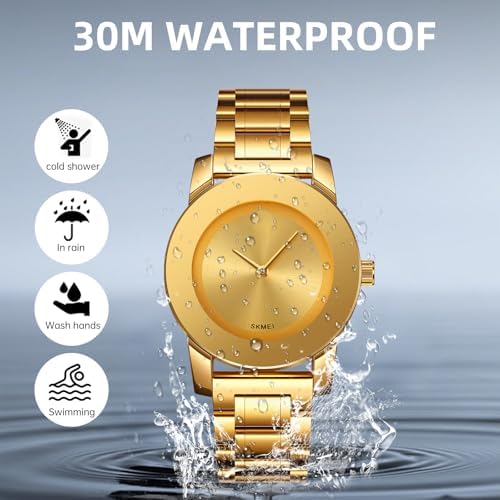 SKMEI Women's Luxury Minimalist Analog Watches with Diamond Business Casual Quartz Dainty Wristwatch for Men Unisex Watches