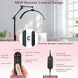 【Large & Foldable Lamp Head】: 27.5 "wide-area folding lash light, equipped with 308 high-color rendering LEDs (CRI≥90), outputting 4000 lumens of shadowless light. The unique curved lamp head supports 270° rotation +180 ° folding, accurately illuminating different areas of the customer's face. 【Adjustable Height & Ultra-flexible Lamp 】: Our eyelash tech crescent lamps are adjustable in height from 57.08"to 80.7" to ensure optimum comfort in the workplace. Two light poles are particularly flexible and adjustable by 180° allowing you to direct light precisely to any angle, eliminating shadows and blind spots, ideal for delicate work. 【Convenient & Reliable Cross Base】: This half moon light features a sliding 360° PVC small casters and integrated brake lock design that easily rolls on the salon floor and locks firmly in place without damaging the carpet for faster, more Safe, more efficient service. 【Two Control Options】: This tech light is equipped with dual modes of wireless remote control and touch buttons. The brightness can be accurately adjusted with a touch, or the remote control can be used to remotely control it anywhere in the room to easily switch between bright lighting during the day and soft light at night. Easy operation makes home lighting more worry-free and comfortable. 【Designed Specifically for Beauty Salons】: iVict eyelash technology light comes with a mobile phone holder that can be easily shared on saocial media! Soft lighting takes care of your eyes while allowing you to enjoy maximum facial comfort. Ideal for beauty/spa/nail salons, training schools, makeup videos, live broadcasts.