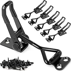 ULTIMATE TIGHT SEAL TO PROTECT YOUR BELONGINGS: Designed to provide an ultimate strong, tight seal, our toggle latch clamps prevent air leaks and keep doors or lids firmly closed, perfect for freezers, cabinets, or storage boxes. They ensure your contents stay safe and secure, even under pressure. You can trust that your food, tools, or equipment will be protected, saving you from costly replacements or repairs. PREMIUM ADJUSTABLE TOGGLE LATCH FOR A PERFECT FIT: Featuring a premium adjustable threaded hook, our toggle latches clamp lets you easily fine-tune tension for a perfect fit on any project, from freezers to smokers. It guarantees a secure hold without slipping. You’ll enjoy seamless installation and peace of mind, knowing your setup is perfectly tailored to your DIY or repair needs. EFFORTLESS INSTALLATION WITH SUPERIOR SCREWS INCLUDED: Each pack includes 6 adjustable toggle clamp latches and 24 superior durable screws, ensuring quick installation on any surface without needing extra hardware. The high-quality screws won’t strip or break, addressing a common frustration. You’ll save time and effort, setting up toolboxes or furniture in minutes with confidence. STURDY BLACK FINISH FOR LASTING DURABILITY: With a sleek black coated finish, our toggle latches resist rust and corrosion, even in harsh outdoor conditions like on boats or garden sheds. Crafted from top-quality metal, our premium latch clamps offer exceptional strength, capable of withstanding 330 lbs (150 kg), ensuring they won’t bend or break under pressure. You’ll have a reliable, long-lasting solution that looks great and withstands the elements, keeping your items secure for years. VERSATILE FOR ALL YOUR PROJECTS: Our toggle latch clamp fit a wide range of applications, from sealing deep freezers to securing smokers or chicken coops, with a compact size for small to medium-duty tasks. They offer flexibility without compromising strength. You’ll love how easily they adapt to any project, ensuring a reliable hold every time.
