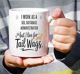 Gift Design Idea Funny Gift for a Sql Database Administrator, Pet Lovers, I Work As a Sql Database Administrator, But I Live for Tail Wags 11 Oz White Ceramic Coffee Mug