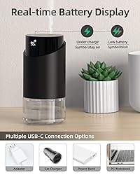 [New-Release Diffuser Combining Classic and Modern Craftsmanship] This waterless diffuser, based on the original model, added battery display and is more compact in size, reflecting a minimalist design. The cylindrical high-quality metal body brings elegance, while the glass base adds a vintage touch. Our industry-leading heat-free and waterless diffusion technology converts essential oils or fragrant oils into nano-sized steam particles, providing the purest form. [Produce Ample Aroma for Large Rooms] This powerful mini scent machine is capable of filling room areas of up to your baseroom. With natural and undiluted fragrance. It is compatible with nearly all essential and fragrance oils available on the market. Perfect for home, office, studio, bedrooms, spa rooms, bathrooms, dining rooms, and more. [Enhanced Driving Experience] This ultra-portable diffuser boasts a 2000mAh battery for 48-hour continuous use as a mini aroma diffuser. Charging is a breeze with the included USB-C cable. Charging time is typically 4 hours. Specifically engineered with car-friendly dimensions to securely fit standard cup holders, it's the ultimate waterless oil diffuser for travel - take your portable aromatherapy diffuser anywhere. [Easy Touch Operation] Control the top panel of this scent air machine. Change scents with a Press & Hold the center Switch Button. Choose the aroma intensity level or set a timer with just a tap of your finger. 3 intermittent mist settings (Low/Medium/High) are available for different occasions. 3 timer settings (1h-2h-3h-8h Countdown Timers & OFF). E.g. Set a 1-hour timer for your living room and hallway/Set 3 hours for a salon. [Designed for Convenience & Safety] This scent diffuser equiped with 100ml large glass and is compatible with most standard essential oil. Its Auto 45° Spill-Protection feature temporarily powers off the device when tilted or inverted, preventing spills. Tap the center Switch Button to turn the candle ambient light on or off, tailored to your needs. Unlike traditional ultrasonic aroma diffusers, you no longer need to waste water by cleaning refilling a tank frequently. [After-Sale Service]Your waterless diffuser includes a full 1-year warranty. If you encounter any issues, simply log into your account, go to "Your Orders" and click "Contact Seller". We'll resolve it within 24 hours—whether it's troubleshooting, replacement, or a refund