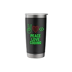 Coding Peace Love design for software developers, programmers, IT geeks, coders, tech enthusiasts, and computer science majors. Great for full stack devs, backend engineers, web designers, and binary wizards who live to code. Awesome gift for coders, techies, students, teachers, dads, moms, or coworkers for Christmas, Pi Day, back to school, graduation or Hackathon events. Ideal for bootcamps, tech meetups, and office coding battles. Dual wall insulated: keeps beverages hot or cold Stainless Steel, BPA Free Leak proof lid with clear slider