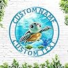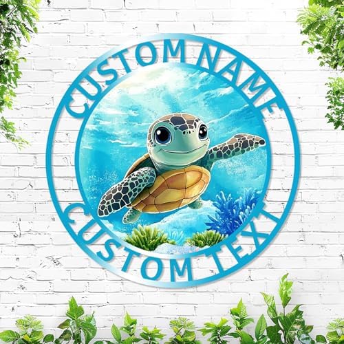Personalized Colorful Sea Turtle Metal Name Sign, Custom Blue Ocean Turtle Wall Sign Metal Wall Art, Customized Cute Turtle Home Lake House Beach Sign Indoor Outdoor Decorative Signage