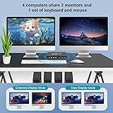 HDMI KVM Switch 4 Computers 2 Monitors with 3 USB3.0 Ports, 4K@60Hz Dual Monitor KVM Switch 4 Port for 4 PCs Share 2 Monitors, Support Button Switch, Adaptive EDID, 4 in 2 Out