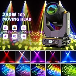 2PC Moving Head Light with Case 280W 10R LED Beam Stage DJ Lights 17 Gobos 15 Colors DMX512 Prism Rainbow Effect High Brightness Spotlights Sound Activtaed for Bar Disco Wedding Concert Lighting