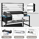 Natwind Wide Format Printer Stand, Plotter Workbench Table with Pull-Out Drafting Storage, Roll Paper Holder, Accessory Drawer, Adjustable Storage Shelf for Plotters and Cutting Machines (Black)