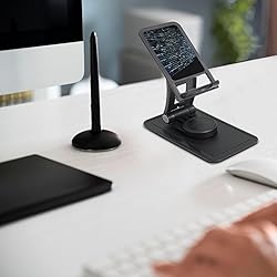 Versatile 360° Rotation: Our Adjustable Tablet Stand for Desk features a unique base that allows for seamless 360° rotation, enabling you to adjust your device to the perfect viewing angle for video calls, streaming, or reading Universal Compatibility: Designed with multi-angle adjustments, this Rotating Display Stand Phone Stand is compatible with both smartphones and tablets. Whether you're using an iPhone, Android, or an iPad, enjoy a stable and secure hold Compact & Foldable Design: This portable Adjustable Desktop Phone Holder boasts a foldable design, making it easy to store and transport. Perfect for home office setups or travel, take it anywhere and enjoy hands-free convenience on the go Durable & Easy to Clean: Made from high-quality PP plastic, our Desktop Cell Phone Stand is not only sturdy but also easy to maintain. Simply wipe it clean with a cloth or wash it with water; just avoid bleach and allow it to air dry Ideal for Work & Leisure: Whether you're working from home or relaxing during your downtime, this Foldable Desktop Dock versatile stand enhances your experience. It's suitable for any setting, ensuring you get the most out of your devices in both professional and casual environments