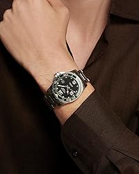 Automatic L888 movement, hours, minutes, seconds, and date. Screw-down case back Stainless steel with double safety folding clasp Imported