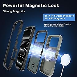 Compatible with iPhone 17 Pro Max(Only) Maverick Series for iPhone 17 Pro Max Case Heavy Duty : DROP + 4X TESTED MILITARY STANDARD ( MIL-STD-810G 516.6 ),Multi-layer Defense Heavy Duty Protection, Shockproof from Accidental Damage. Ultimate Magnetic Attraction: Made for iPhone 17 Pro Max (6.9") Case, this design features 38 enhanced N52 magnets—ensuring easy alignment and perfect compatibility with all MagSafe accessories. Extra Layer of Protection Case for 17 Pro Max: The 1.6mm raised screen lip not only shields the display from collisions and scratches but also ensures a smooth, comfortable grip without bulky protrusions during daily use. Complete with a Tempered Glass Screen Protector, it effectively defends the screen against fingerprints, smudges and scratches. The texturized bumper grip prevents the phone from slipping out of your hands, reducing the risk of accidental drops and slips. Rugged Case for iPhone 17 Pro Max: Enjoy Complimentary M MYBAT PRO Lifetime Coverage, with Peace of Mind for Life.