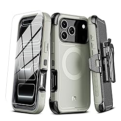 - Special Features: Only For iPhone 17 Pro Max Kickstand, Heavy Duty Protection, Shockproof, Anti-Fingerprint, Screen Protector Colour: Black/Blue/Plum/Army Green/Natural Titanium/Brown Included Components: M MYBAT PRO Maverick Phone Case*1 Belt Clip Holster*1 Screen Protector for iPhone 17 Pro Max*1 Manufacturer: Valor Communication Inc. Brand: M MYBAT PRO Material: Thermoplastic Polyurethane Military Grade Protection - Protect Your Device(for iPhone 17 Pro Max) and Feel Secure with This Rugged Case from M MYABT PRO! The Maverick Series Offers Shock Absorbing Corner Protection and Multi-layered Defense from Accidental Damage. A Raised Bezel Lip Adds an Additional Layer of Protection for the Screen. Totally a Heavy Duty Case for Phone. 360° Rotating Holster Clip for Outdoor & Indoor - Detachable Rotating Holster Conveniently Attaches to Your Belt or Bag, Allowing You to Keep Your Device Accessible and Secure, This Case with Holster Belt Clip for Phone Is Wonderful for Outdoor Activities. The Holster Clip Can Also be Converted into a Kickstand for a Hands-Free Way to Watch Videos with Ease. Non-slip Grip - Texturized Bumper Grip That Helps Prevent the Phone from Slipping out of Your Hands; Stopping Slips and Drops Before They Happen.