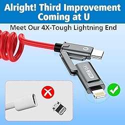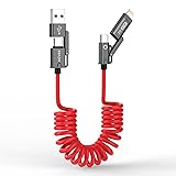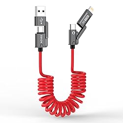 🔒[LockTech Adapter System] Say goodbye to lost adapters! Our slide-lock design secures USB-A and Lightning adapters firmly—even when yanked hard—solving the #1 complaint about multi-cables (no more fishing adapters from couch cracks!). 📱[Slim Fit, No Fuss - Even With Armor-Like Cases] Fits Bulky Phone Cases: The ultra-slim end tip slides effortlessly into 99% of cases, easily plug into thick Waterproof cases, no more removing cases to charge. ⚡[4X Tougher Lightning Connector] Reinforced Lightning tip withstands 4X more bending force—perfect for kids/pets tugging cords. 🛡️ Exquisite Workmanship & Durable, Built to Survive Your Daily Grind. Survives 15,000+ bends, -50°C winters, and frantic unplugs! Tinned copper core = 3x lifespan vs. flimsy cords. 🚗[Tame Your Car's Cable Jungle] No more wrestling with spaghetti cords! Our coiled design stretches from short to long, perfect for tight car spaces, then snaps back neatly like a slinky. Keep your cup holders free for coffee, not tangled chaos! Soft and elastic: No more wrestling with stiff, frozen-spaghetti-like cables in winter; Squishy as a pacifier, coils like a zen master. ⚡[USB-IF Certified + Turbocharged 60W Fast Charging] Certified for safety and speed, this USB-C to USB-C cable delivers 60W rapid charging - juice up your devices faster than your morning coffee brews! 🌟 Compatible with iPhone 16 15 14 13 12 11 XS X etc and Samsung Google Android phone; CarPlay-optimized with anti-interference tech to banish "ghost disconnections"(USB-C Carplay port).