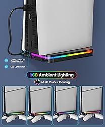 PS5 Wall Mount for All PS5 Models with RGB Light, PS5 Shelf Compatible with All PlayStation 5 Models Including Original, Slim and Pro – Stores Two Controllers & One Headphone Accessories