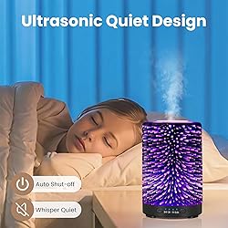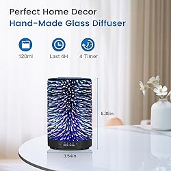 Essential Oil Diffuser, 120 ml Glass Aromatherapy Diffuser with 7 Color Lights, Auto Shut-Off and 4 Timer Settings, Ultrasonic Cool Mist Diffuser for Home Room Office (3D Fireworks)
