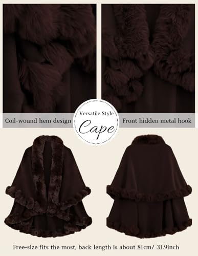 Scarlet Darkness Renaissance Cape Coat for Women Faux Fur Trim Layers Medieval Poncho Cloak