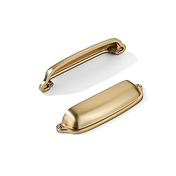 khtumeware 10 Pack Brushed Brass Cup Pulls 4 Inch Center to Center - Cabinet & Drawer Handles for Kitchen Hardware