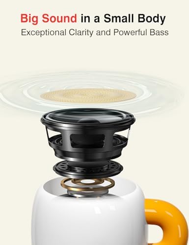 • 【Creative Cup-Shaped Design】: The EWA A163 is not like other Bluetooth speakers; it has a fun cup shape that also serves as a decorative element. Put it on your bookshelf, desk, or nightstand to fill your room with music and make it mix in beautifully.