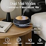 This classic diffuser is the perfect addition to scent and styLarge Capacity - Designed with a true 400ml water tank, this essential oil diffuser provides up to 12 hours of continuous mist—longer than standard models. Perfect for medium to large rooms, it easily covers spaces up to 320–380 sq ft with refreshing fragrance and soothing humidity. No need for frequent refills, making it ideal for day-to-night use.le your home. Customizable Mist Modes - Our diffuser offers 2 mist modes so you can personalize your aromatherapy. It starts with a continuous spray to quickly fill the room with your favorite essential oils, then with one press you can switch to intermittent spray (30 seconds on, 30 seconds off) for a slower, longer-lasting release. You can switch modes anytime for a softer, lasting effect. Smart Timer Settings - Choose how long you want your relaxation to last with built-in timer options of 1H, 3H, or 6H. Whether you’re winding down for a quick nap, enjoying a peaceful yoga session, or settling in for a full night’s sleep, the diffuser will automatically turn off when the time is up or when the water runs out. No worries, no hassle — just pure relaxation. Silent Comfort - Enjoy aromatherapy without any disturbance. With advanced ultrasonic technology, this diffuser runs at less than 23 dB -quieter than a whisper. That means you can sleep soundly, study in peace, or meditate deeply without interruption. All you’ll notice is the soothing mist and calming fragrance filling your space. BPA-Free - Crafted from premium, BPA-free PP materials, our diffuser is designed with your family’s well-being in mind. Designed with a modern and elegant look, this diffuser is more than just functional-it’s a stylish addition to any home or office. It makes a thoughtful gift for birthdays, holidays, housewarmings, or simply as a treat for yourself.