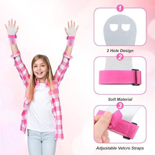 Gymnastics Grips Wristbands Sets for Girls Youth Kids Gymnastic Hand Grips Gloves Wristbands Gymnastic Bar Palm Protection Wrist Support Sports Accessories for Kids Workout Exercise Training