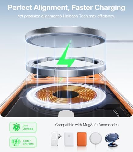 • Compatible with Magnetic Accessories: This case for iPhone 17 Pro Max comes with a built-in magnet that aligns perfectly with magnetic chargers, ensuring strong attachment and efficient wireless charging. Equipped with 38 powerful N56 magnets, it provides a secure hold for all your magnetic accessories such as chargers, wallets, power banks, and car mounts