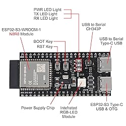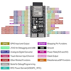 ESP32-S3 Expansion Board GPIO 1 Into 2 Breakout Board Double-Layers Expansion Board with N8R8 Development Board This breakout board can expand the 1 GPI0 pin of the ESP32-S3 board to 2, perfect to reuse all pins and a great tool for your projects USB-to-UART Port and ESP32-S3 USB Port (either one or both), default power supply (recommended);8MB Flash; 2MB PSRAM Long Range Communications: ESP32-S3 integrates 2.4GHz WiFi (802.11 b/g/n), supporting 40MHz bandwidth; its low-power Bluetooth sub-system supports Bluetooth 5(LE) and Bluetooth Mesh, which can realize long-distance communication with broadcasting extension through Coded PHY. It also supports 2Mbps PHY to increase transmission speed and data throughput. ESP32-S3 has excellent WiFi and Bluetooth LE RF performance, and can work stably under high temperature Pre-Soldered ESP32-S3-DevKitC-1-N8R8:ESP32-S3 is an MCU chip integrating 2.4GHz WiFi and Bluetooth 5 (LE). It is equipped with LX7 dual-core processor, main frequency up to 240MHz, built-in 512 KB SRAM (TCM), 36 programmable GPIOs. pins and rich communication interfaces. Supports larger capacity high-speed Octal SPI Flash and off-chip RAM, and supports user configuration data cache and instruction cache