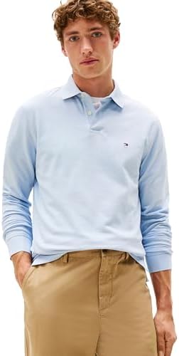 Tommy Hilfiger Men's Long Sleeve Polo Shirts in Regular Fit with Stretch and Organic Pique Cotton