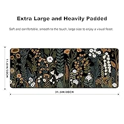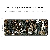 Gaming Mouse Pad for Computer,Large Mouse Pads for Desk Keyboard Cute Flower Desk Mat Laptop,Dark Green Plant Pattern Art XXL Waterproof Keyboard Pad,Extended Big Non-Slip Rubber Mousepad