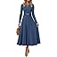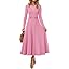 ZESICA Women's Long Sleeve Midi Sweater Dress 2025 Fall Crewneck Knit A Line Pleated Flowy Long Dresses with Belt