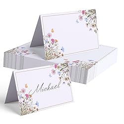 🌸 Elegant Flower Place Cards:Add a natural touch to your table with beautifully illustrated flower place cards. The hand-drawn design brings charm and uniqueness, ideal for weddings, garden parties, or boho-themed events. These place cards create a memorable setting your guests will love. ✍️ Smooth, Smudge-Free Writing:Each place card is made from premium, 300gsm bleed-resistant cardstock, perfect for pens or markers. The special coating keeps your handwriting crisp and legible, so guests can easily find their seats without smudging or mess. 📐 Pre-Scored for Quick Folding:Designed with a pre-scored line, these place cards fold neatly in seconds—no floppy edges or frustration. The folded size is 4" x 2.5", giving you ample room to write names, table numbers, or personal notes. 🎨 Multi-Purpose & Creative Use:These flower place cards are perfect as name tags, food labels, table numbers, or thank-you notes. With no preset text, you have full creative control—great for weddings, showers, dinners, or everyday entertaining. 🎉 Value Pack of 100 Place Cards:This set includes 100 high-quality place cards, enough for 50 to 100 guests. Whether it's a small family gathering or a large event, these place cards bring a clean, polished touch to any occasion.
