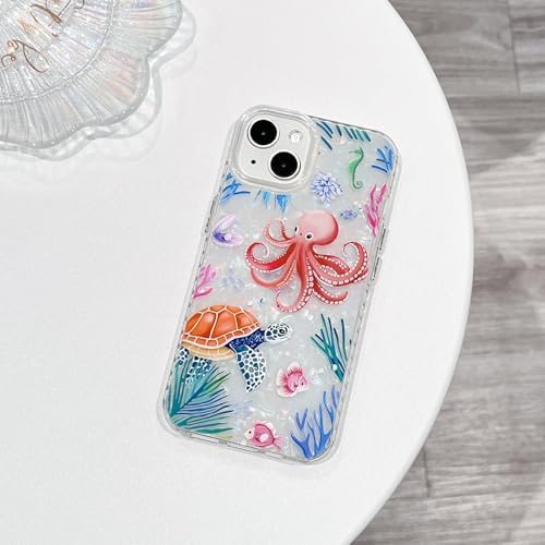 Lovmooful Compatible for iPhone 13/14 Case Ocean Animal Seascape Cute Marine Life Element with Shell Patterns Design for Women Girls Soft TPU+PC Shockproof Protective Girly-Octopus