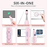 Norwii N21 Bluetooth Presentation Clicker with Telescopic Teaching Pointer, Presentation Remote with Retractable Stick for PowerPiont, Wireless Presenter, Slide Advancer - Pink