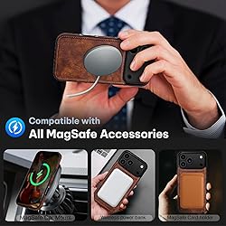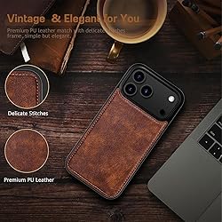 [Compatible with iPhone 17 Pro Max 6.9" 2025] - Classic Business style for iPhone 17 Pro Max Leather Case, support with Magsafe wireless charging and full screen protector. Wonderful gifts choice for yourself, family and friends on holiday and special day. [Vintage Elegant Leather Design] - Crafted from premium vegan PU leather case for iPhone 17 Pro Max, match with sophisticated designed fine stitching, simple but elegant, vintage for iPhone 17 Pro Max case for Men and Women. [Strong Magnetic Adsorption & Compatible with MagSafe Accessories ] - Strong Magnetic Phone case for iPhone 17 Pro Max, built-in super strong magnets circles, compatible with all Mag safe accessories & wireless chargers, such as power bank /magnetic car mount/wallet, etc. [Comfortable Non-Slip Grip] - Slim form-fitted to maintain stylish sleek profile and pocket-friendly, Anti-slip matte finish gives fingerprint-resistance, dust-proof and comfortable grip in daily use. Precise cut-outs achieves easy access to all ports for iPhone 17 ProMax. [Shockproof & Rugged Protection] - Tough and durable layer of anti-scratch TPU back with shockproof inner corner is built to withstand everyday impacts, raised bezel to lift the screen and camera off the flat surface to protect phone well